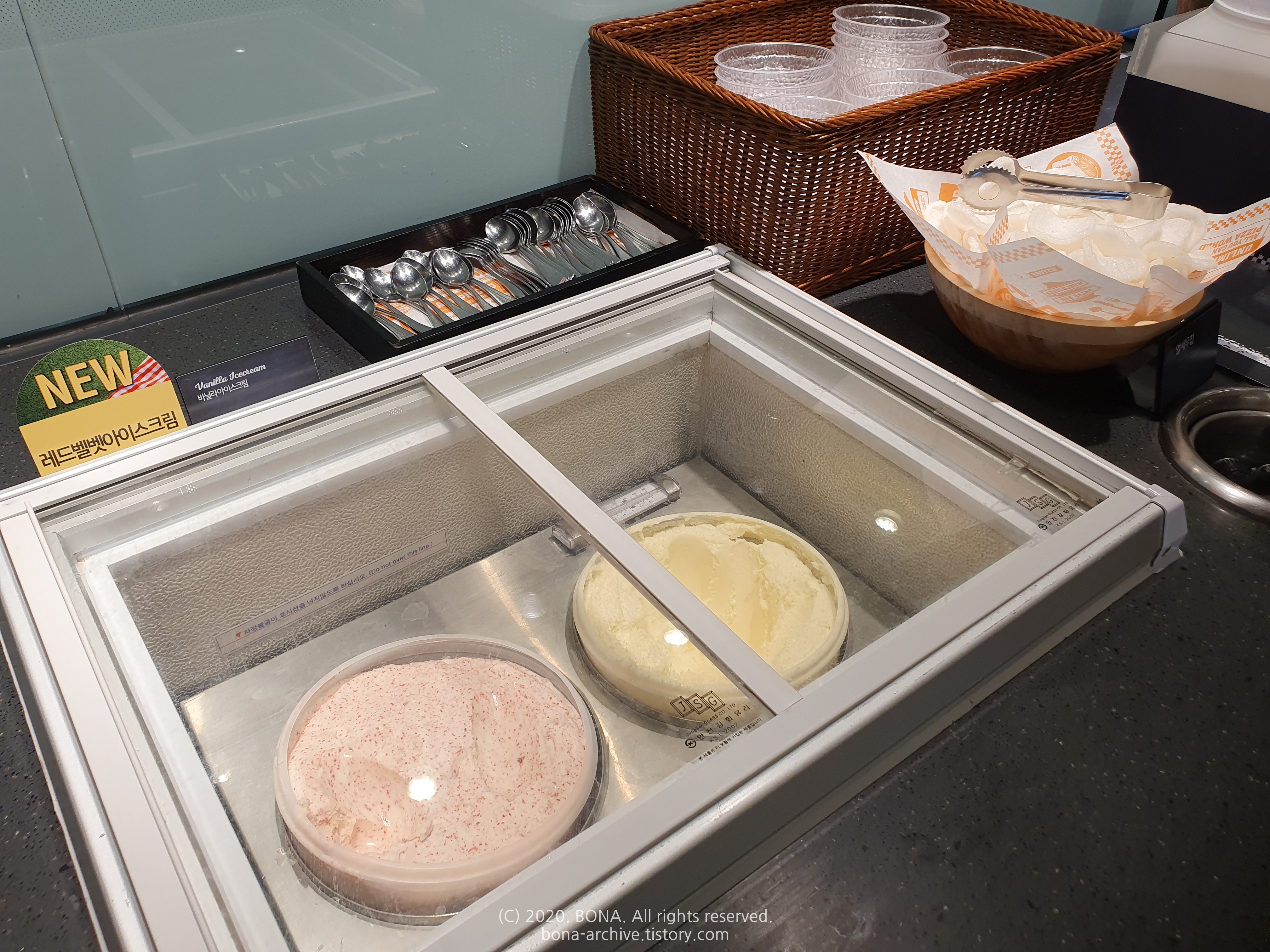 레드벨벳 아이스크림과 바닐라아이스크림.