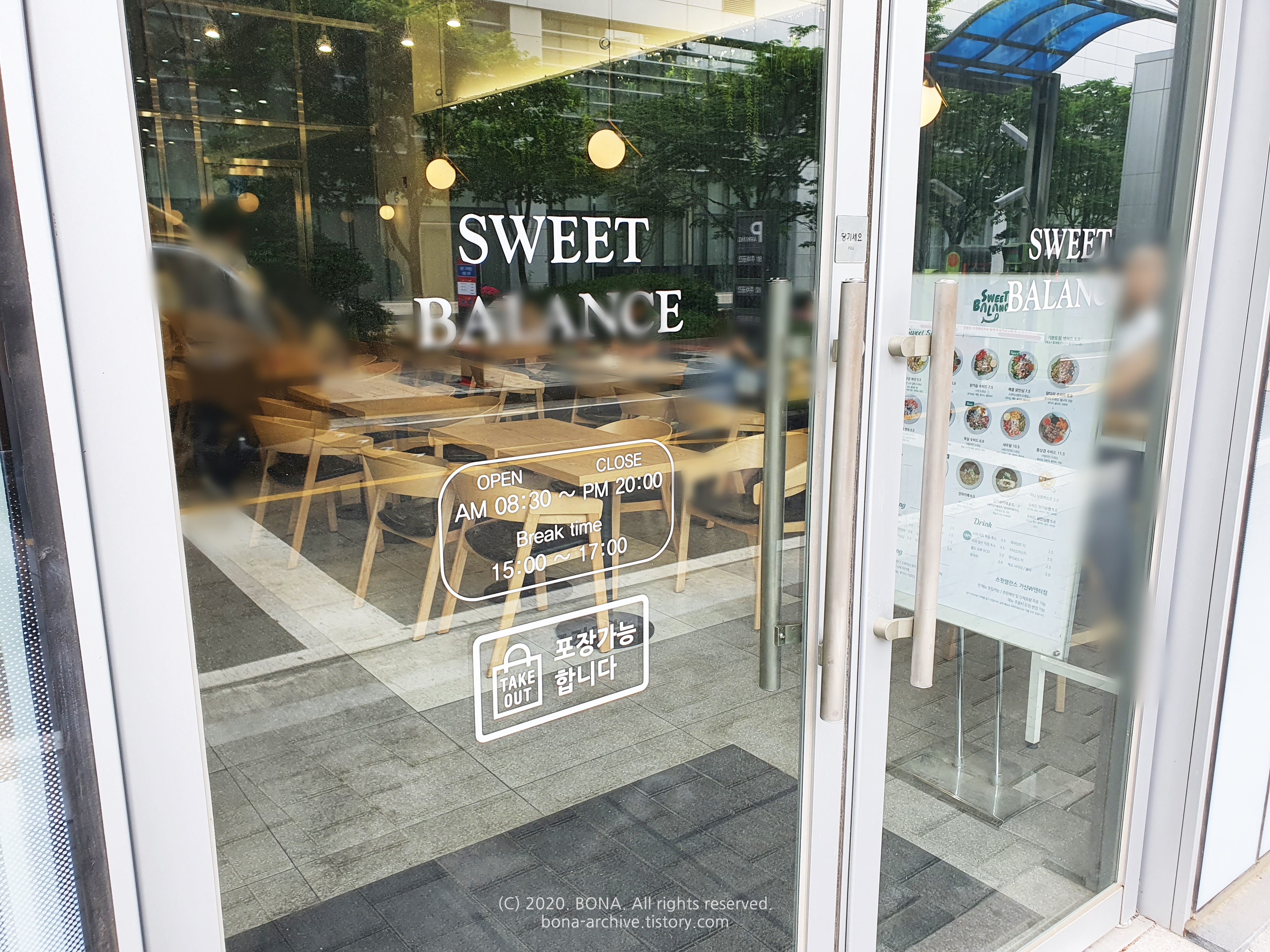 스윗밸런스 영업시간은 아침 8:30~오후 20:00까지이고, 브레이크 타임이 15:00~17:00 까지 입니다.