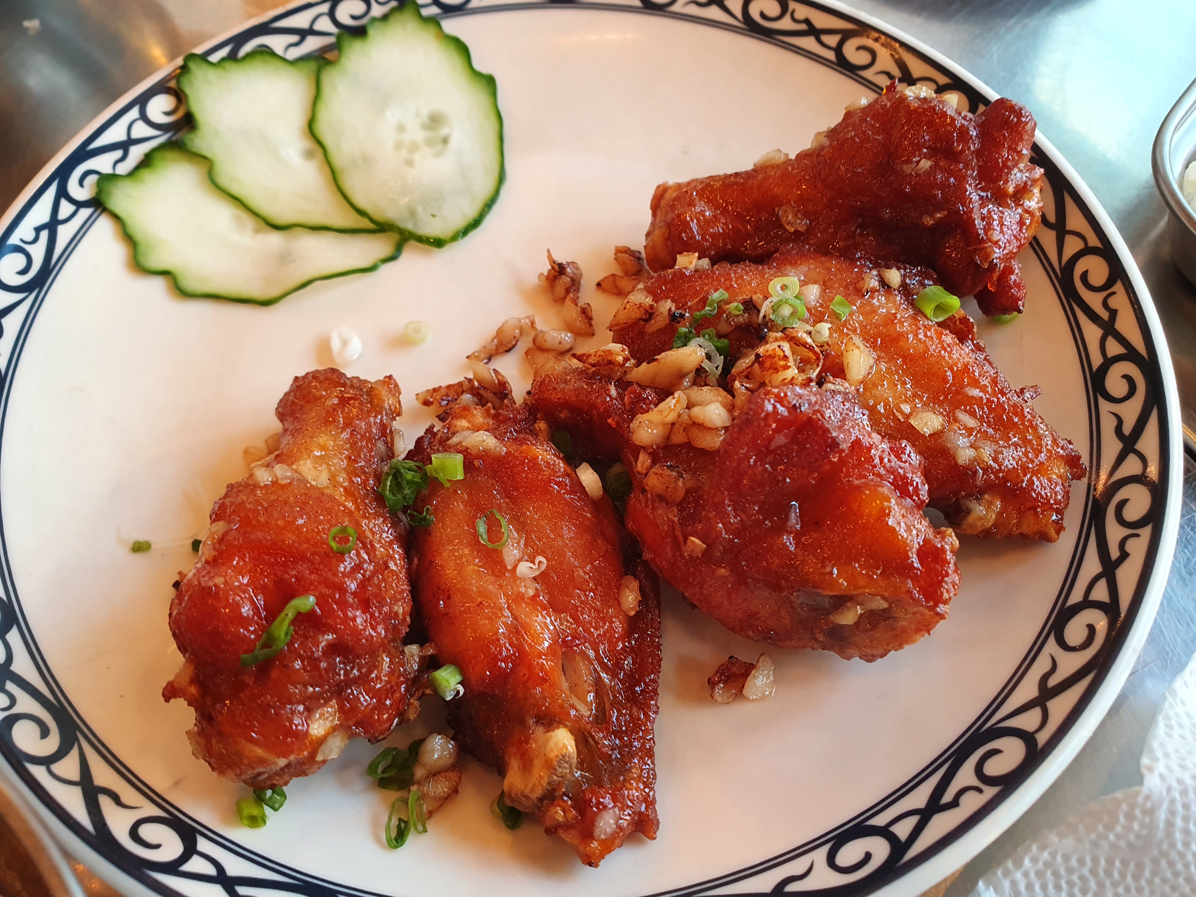 느억맘 닭날개 튀김. 향신료 향이나 소스맛이 강하지 않은 무난한 닭날개 튀김이었어요.
