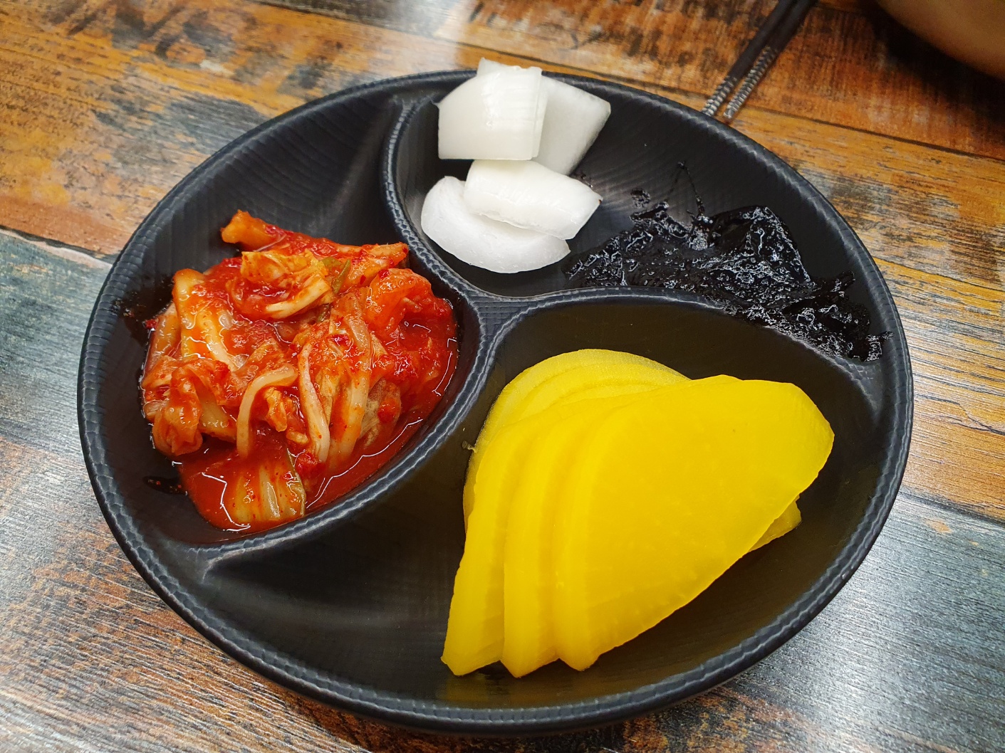 셀프코너 반찬들과 식사와 함께 제공되는 짬뽕국물. 특별한 건 없지만 맛있었어요.