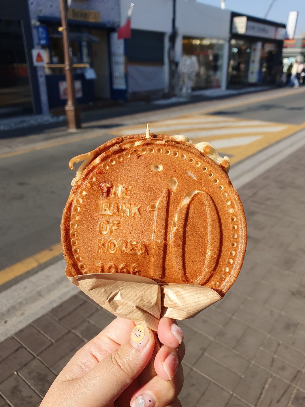 경주 안 온 사이 유명해졌다는 십원빵도 먹어봤어요. 뭐 대단한 맛은 아닙니다만 빵 반죽이 맛있고 치즈가 가득 들어있어서 좋았어요.