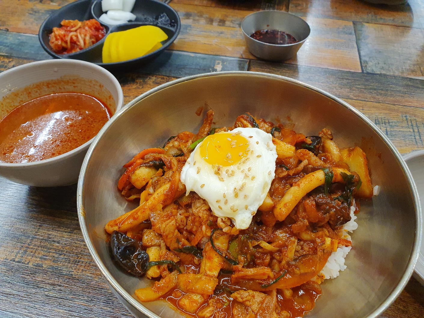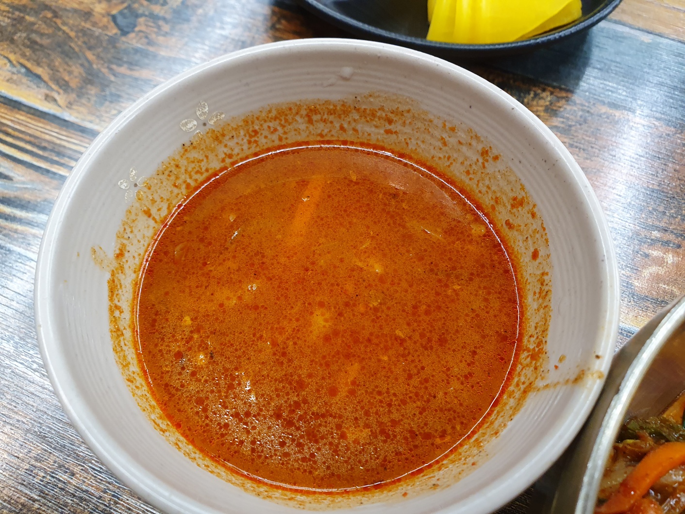 저는 맛있긴 했는데 중간 지점부터는, 음 그만 먹고 싶다는 생각이 들었어요. 간이 세서 셀프코너에서 밥을 더 떠와서 넣어먹었는데, 그랬더니 양이 너무 많아져서 힘들었습니다. 처음부터 살짝 양념을 덜어내고 먹는 것도 좋겠네요.