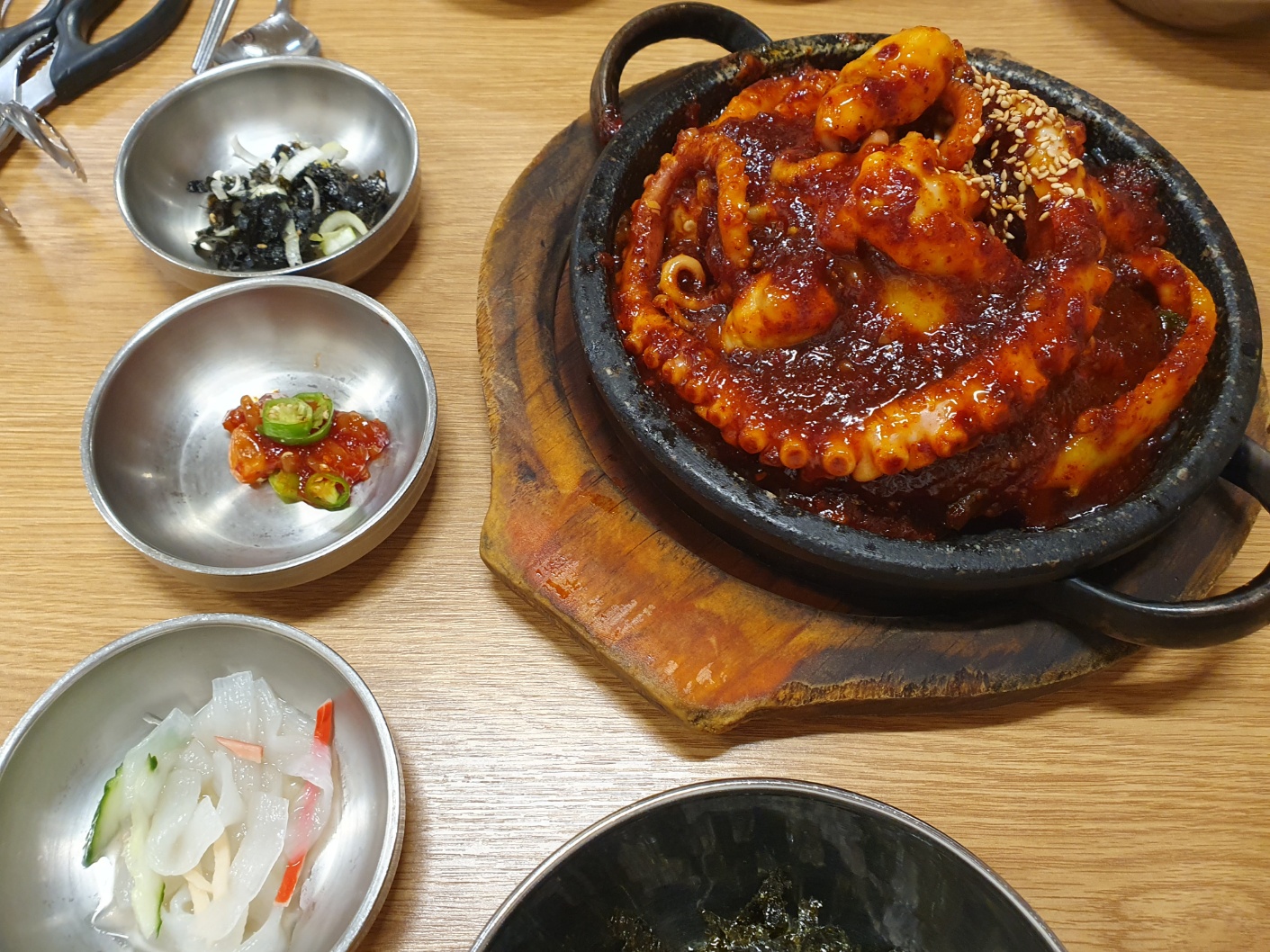 신라식당,, 제가 먹어본 낙지볶음 중에 가장 맛있었습니다. 집 근처에 있었다면 2주에 한번은 무조건 갔을 맛.ㅠㅠ