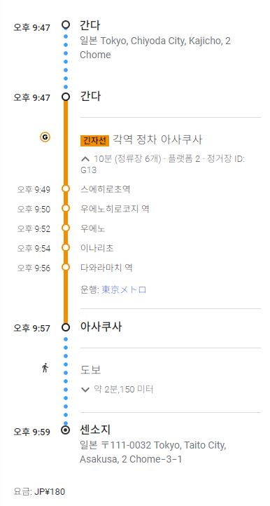 간다역에서 긴자선을 타고~ 아사쿠사역으로 향했습니다. 긴자선 6정거장 타고 아사쿠사역에 내려서 조금 걸으면 센소지에 도착합니다.