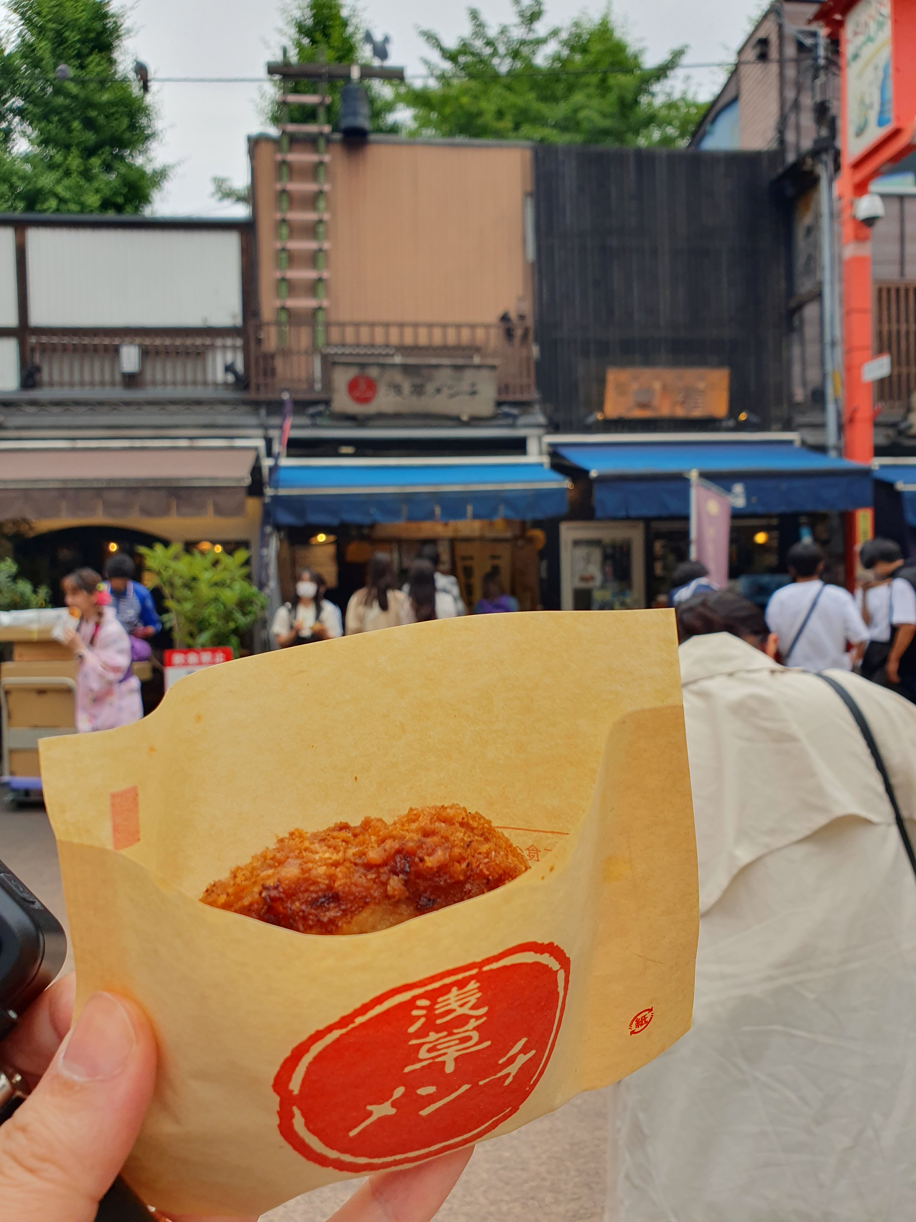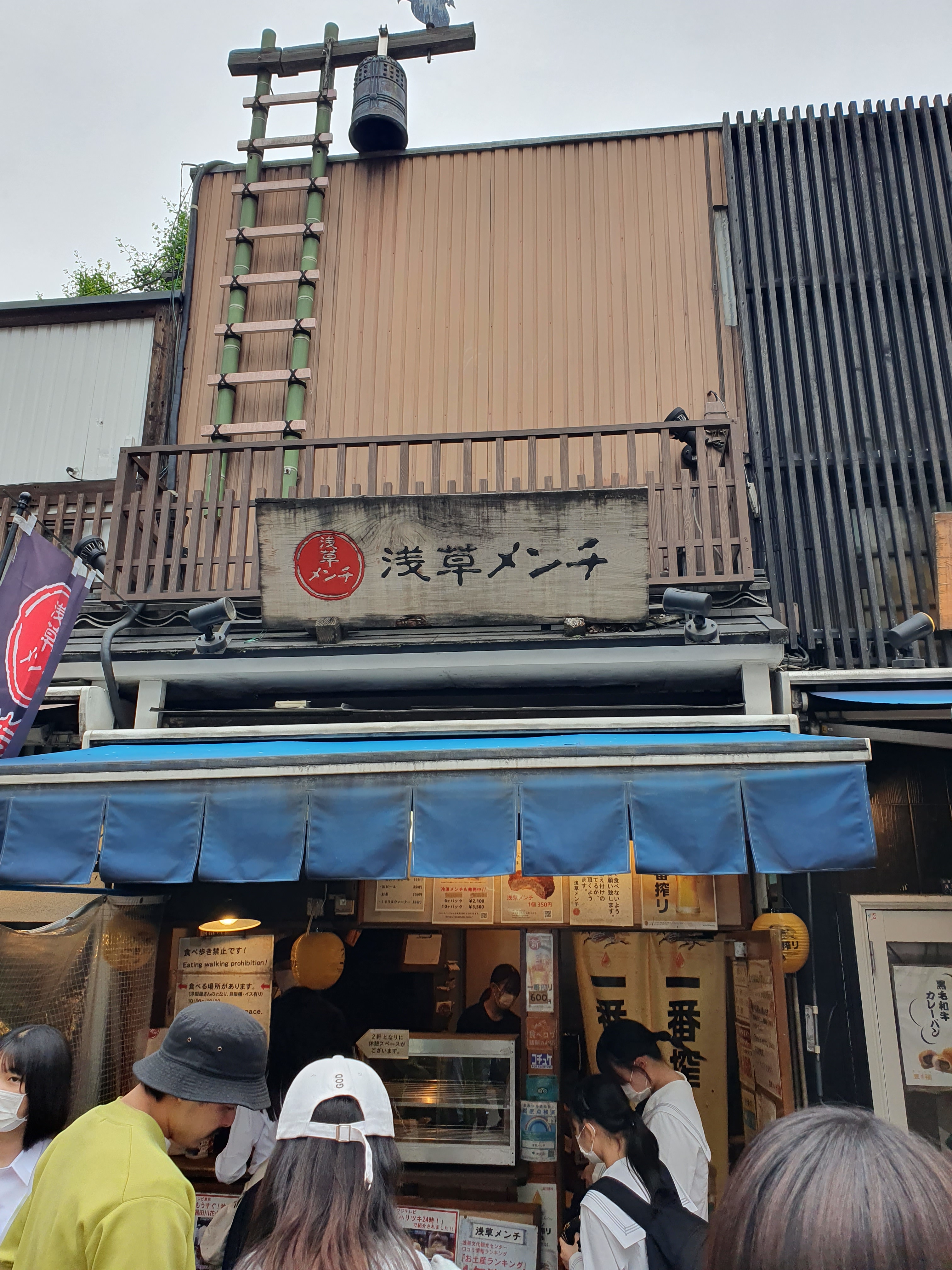 여기서 유명하다는 아사쿠사 멘치카츠에 갔습니다. 제가 갔을 때 다행히 사람이 그리 많지 않아서 바로 살 수 있었어요.
