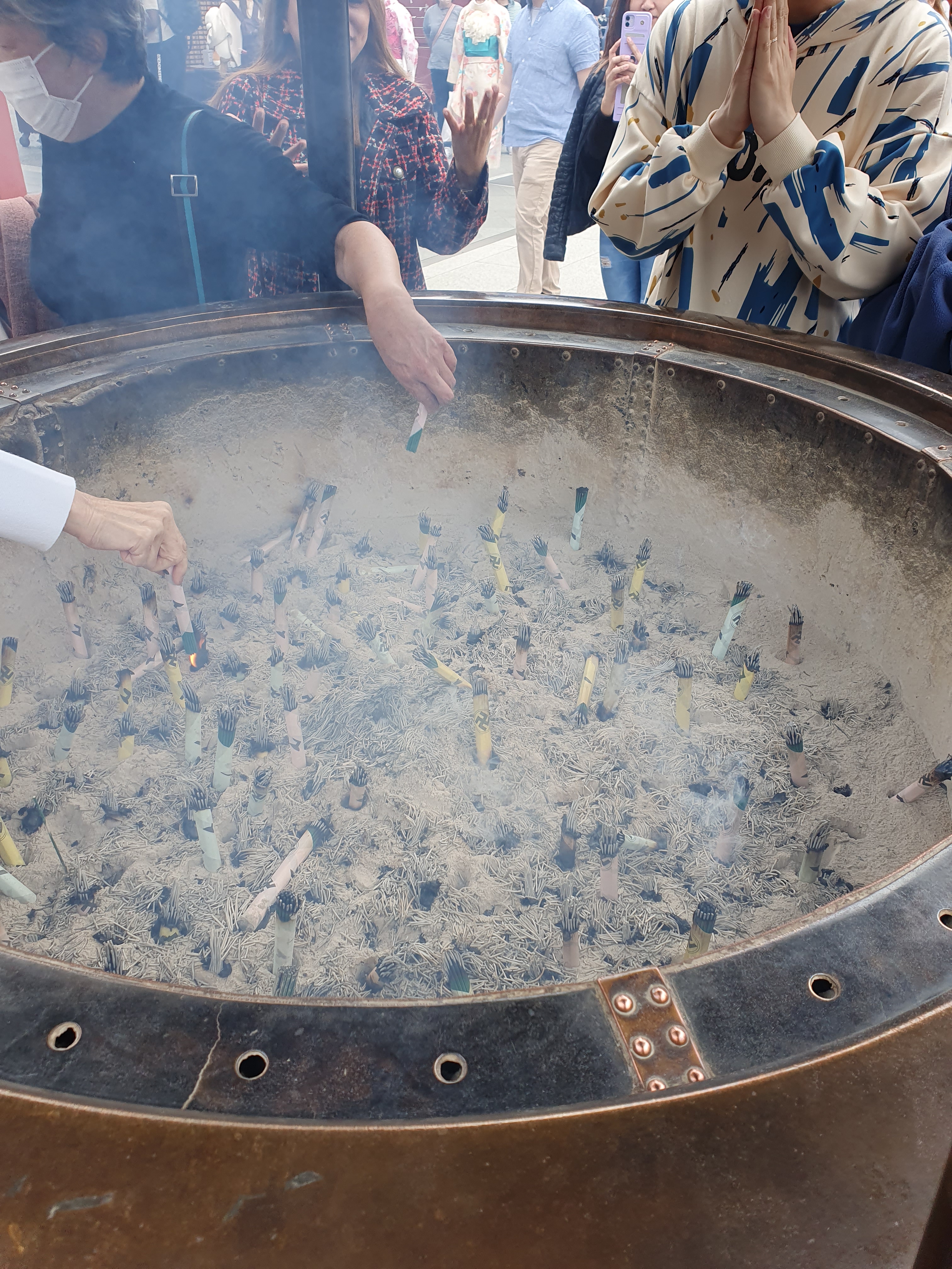 절 마당에 이렇게 커다란 화로가 있어서 사람들이 향초를 꽂아두고 기도를 하더라고요. 신기했네요. 연기가 엄청나게 올라옵니다.