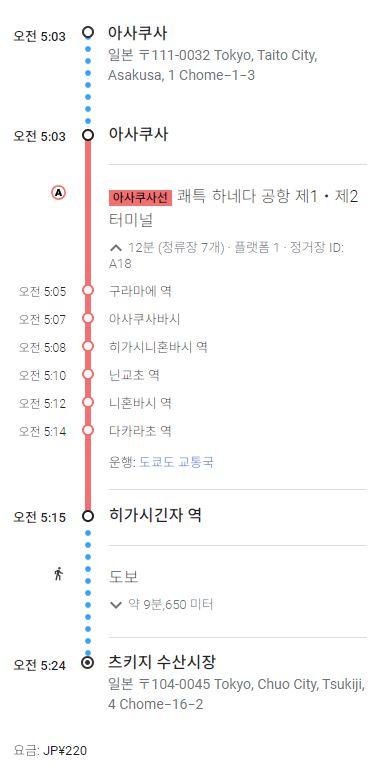 이후 일정은 아사쿠사역에서 아사쿠사선을 타고 히가시긴자역으로 가서, 츠키지 시장에 가는 것이 목표였어요.