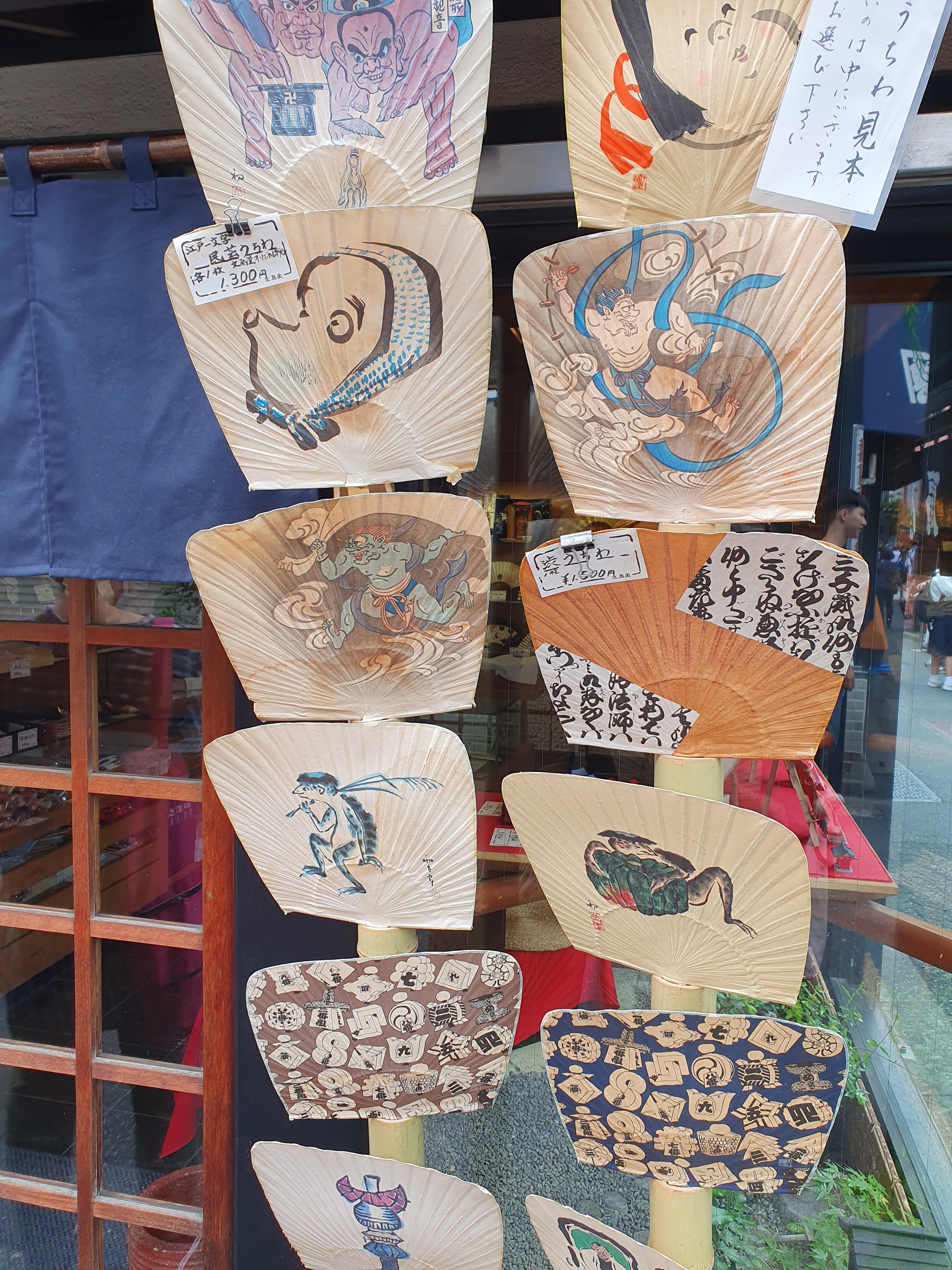 일본풍 그림들이 그려진 부채. 갓파도 그렇고 각종 설화에 등장하는 요소들을 그려둔 것 같았어요. 신기해서 찰칵~